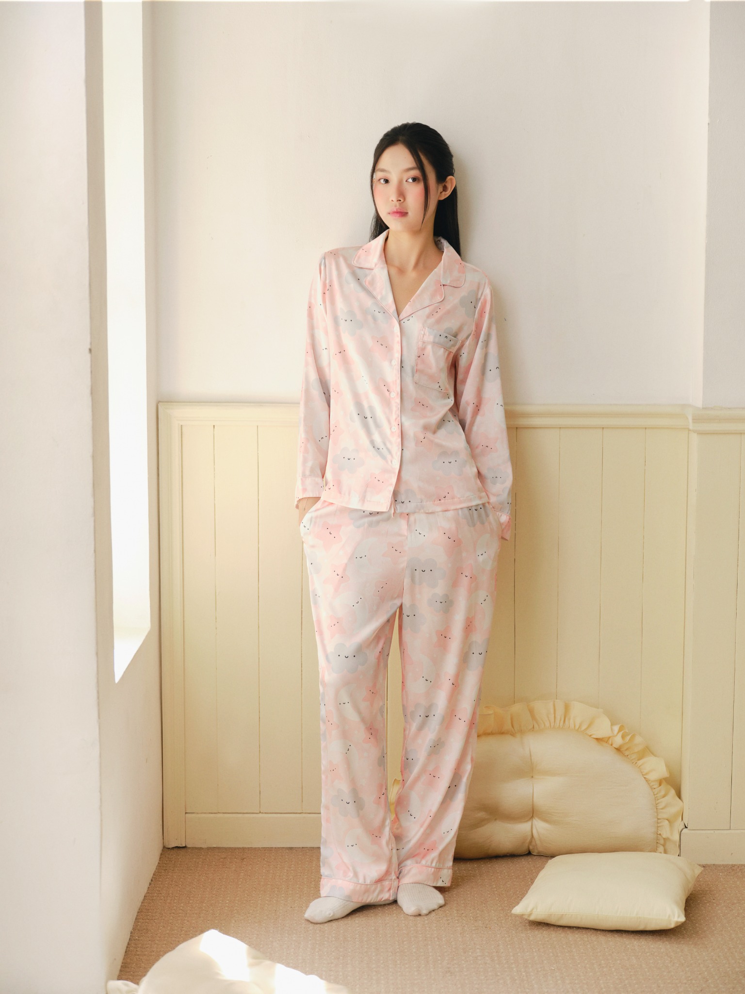 Đồ bộ mặc nhà pijama dài tay lụa satin crepe cao cấp Cloudy Long Py Set