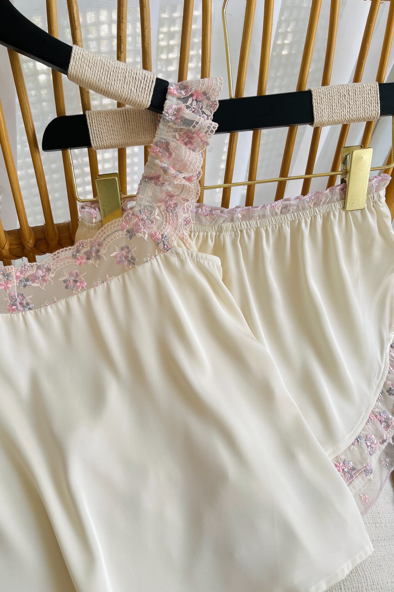 Bộ đồ mặc nhà 2 dây lụa latin chính phẩm Honey Lace Straps Set