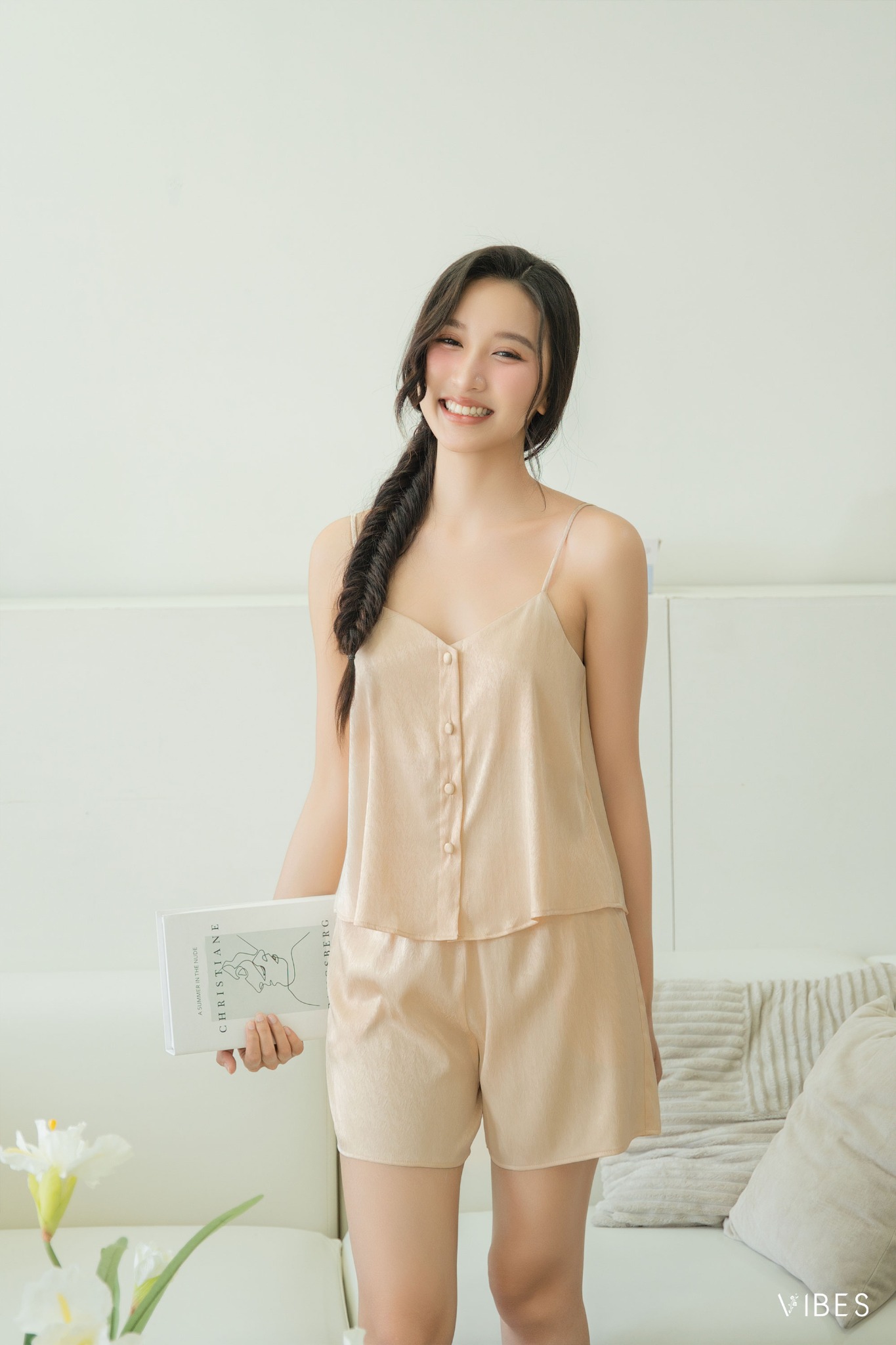 Đồ bộ mặc nhà 2 dây quần ngắn lụa vân gỗ cao cấp Sandy Straps Set